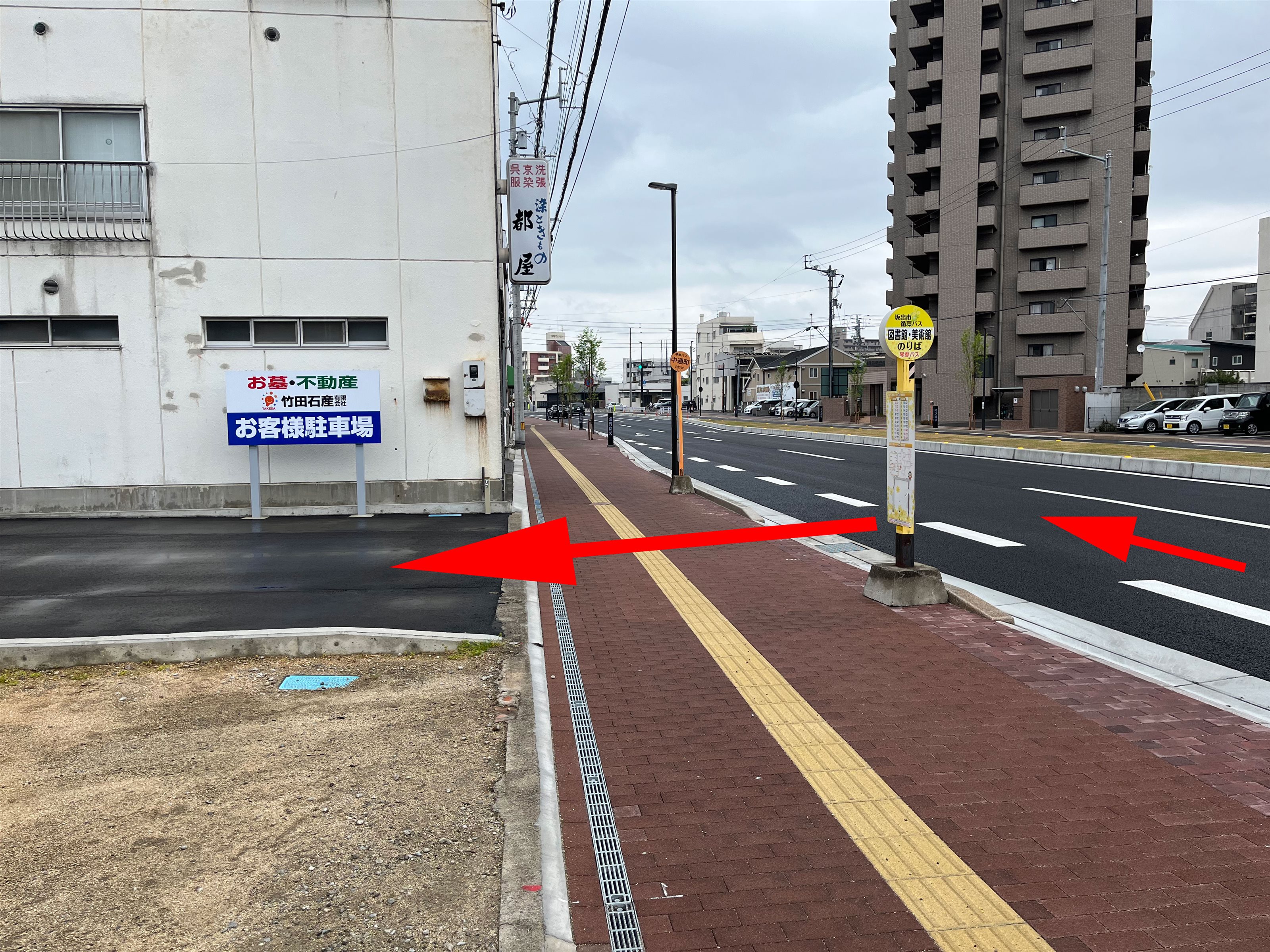 2つのバス停の間を入ってください。